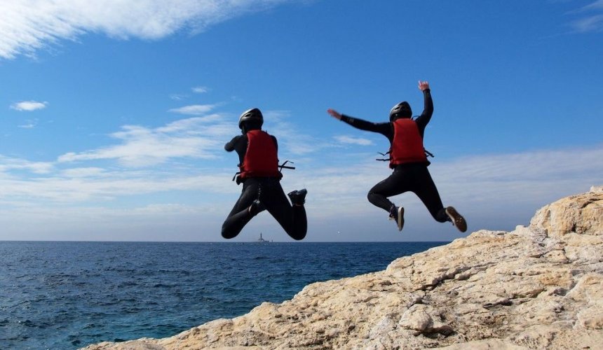 Coasteering includes: safety instructions, taking the equipment, coasteering adventure, photographing cliff jumping and adrenaline fun!